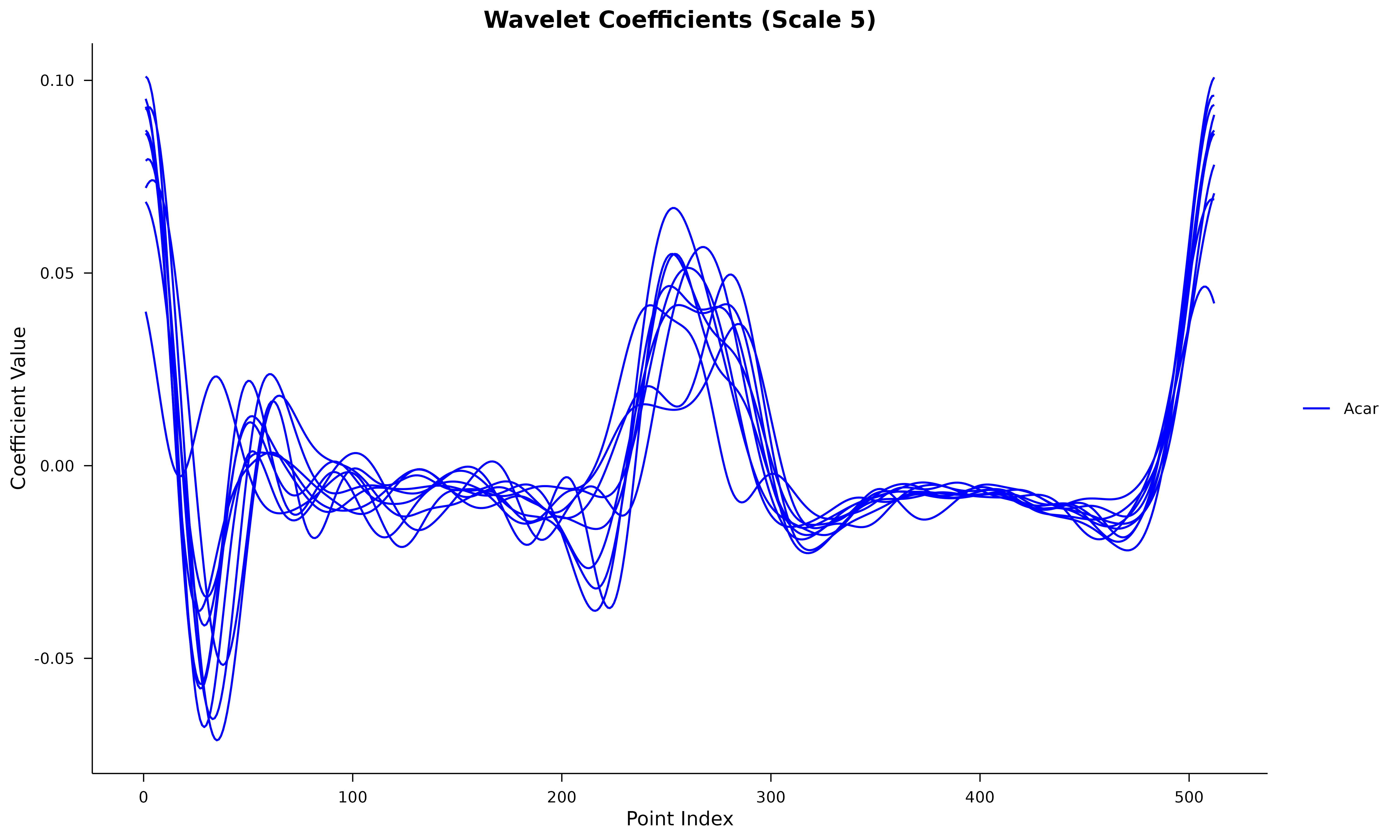 labs(title = "Wavelet Coefficients (Scale 5)", x = "Point Index", y = "Coefficient Value") +